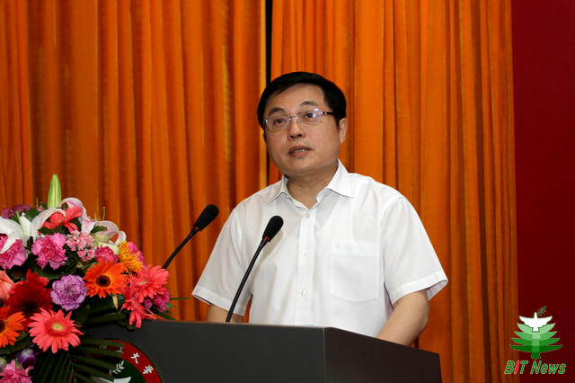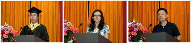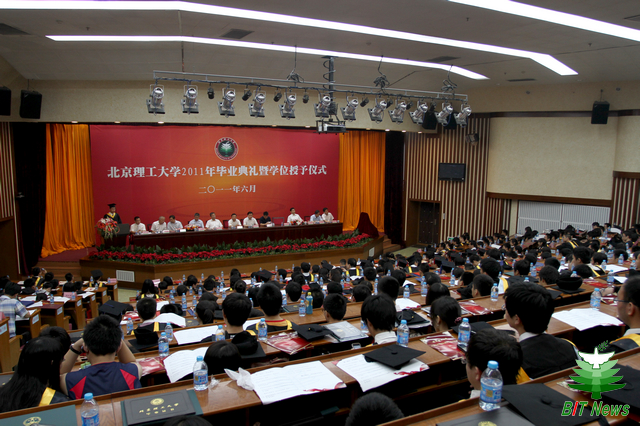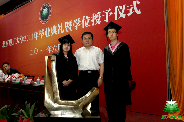 机电学院陈曦副教授代表全校师生员工向毕业生作了情真意切的临别寄语,希望同学们在走出校门后依然能够珍惜时间、勤奋学习,不断充实自己,宽容和真诚地对待别人,乐观积极地对待生活,希望同学们作为北理工的校友,为祖国的建设和发展贡献力量,为母校增光添彩。