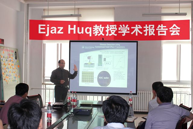 英国卢瑟福Appleton实验室隶属英国科学与技术设施管理理事会,该实验室曾培养了多位诺贝尔奖得主。 该实验室微纳中心主任科学家、理事会常务理事Ejaz Huq教授6月20-21日访问德赢AC米兰中国官方网站微纳中心和材料学院纳米光子学材料与技术实验室,并于6月20日下午在五号教学楼502会议室作了一个“针对生命科学和医疗保健的微系统”的学术报告。 微纳技术中心常务副主任邹炳锁教授主持报告会,并介绍了Ejaz Huq教授的简历及其在学术上所取得的成就。 Ejaz Huq教授首先介绍了英国卢瑟福实验室的架构,然后针对其微纳中心开展的微加工结构的液体粘度与分子间作用力测量、 微结构影响下生物抗体抗原偶联的电学测量、 微力学测量与光学测量联用、 微结构的空间传感器件应用等进行了深入浅出的讲解, 并认真回答了老师和同学的提问。 参加学术报告的有材料学院、生命学院和微纳技术中心的多位教授、博士生导师和研究生代表,共约30余人。第二天,Ejaz Huq教授还与邹炳锁教授、刘瑞斌博士就微纳中心超净室建设、 微纳激光器加工制作等方面的问题开展了深入的讨论,双方就德赢AC米兰中国官方网站微纳中心、材料学院与英国卢瑟福Appleton实验室进行具体的长期科研合作和研究生培养达成了一致意见。