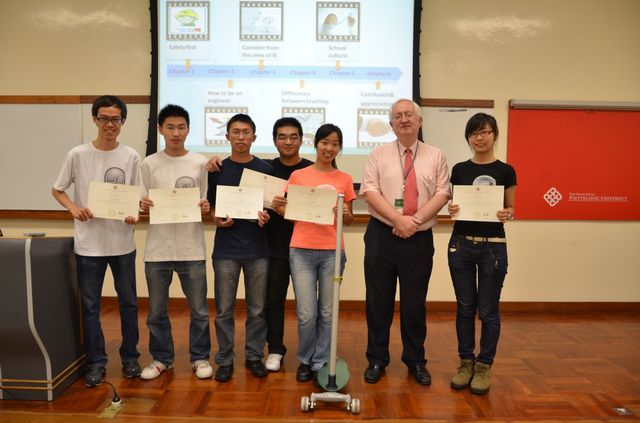 活动结束后,我校6名同学用英语做了精彩的总结,从安全意识、技术在企业中的应用、工业工程思想、校园文化对比等多方面表达了自己的真实感想,得到了包括香港理工大学工业中心总裁在内的老师们的充分肯定。最后,由香港理工大学工业中心总裁向我校6名学员颁发了纪念证书。