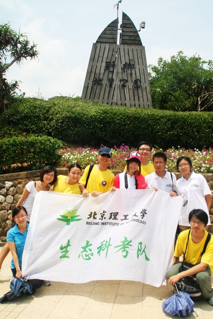 野柳地质公园位于台湾省万里乡,野柳是突出海面的岬角,长约1700公尺。受造山运动的影响,深埋海底的沉积岩上升至海面,产生了附近海岸的单面山、海蚀崖、海蚀洞等地形,海蚀、风蚀等在不同的岩层上作用,形成蜂窝岩、豆腐岩、蕈状岩、姜状岩,风化窗等世界级的岩层景观,造就了千奇百怪的瑰丽景象,是台湾著名的十二名胜之一。富贵角位居台湾的最北端,为一海岬,岬头附近山翠海碧,景象壮观,因东北季风盛行,风棱石相当发达。湛蓝的海水拍打岩石,特殊的海洋景观美不胜收,但在欣赏美景的同时,科考队员们还对当地特殊的植被进行了考察。队员们认真记录了台湾亚热带海洋气候环境下特殊的植被,还仔细观察了某些特殊植物对当地土质的作用,特别是滩头沙地采用的推沙筑丘,挡风拦水,构建起小型类湿地生态微环境的沙地绿化方法,引起了同学们的强烈兴趣,邓玉林院长也为同学们做了现场指导。观察的同时,队员们也留下了许多疑问,准备日后回到北京进一步查阅资料,进行总结和分析。另外,科考队还考察了位于台湾北端的第三大河流的淡水河入海口。