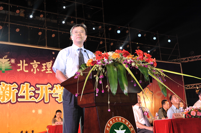 珠海学院院长刘淑艳在开学典礼上发表讲话。刘淑艳院长首先欢迎2011级6000余名新生的到来,并提出殷切期望。珠海学院的学生在国家、省级竞赛中与名牌高校的同学同台竞争,并取得优异成绩,在与校本部的同学参加全国大赛集训的表现,也获得校本部老师的赞许。珠海学院今年考取、免试推荐研究生的百余名毕业生中,更有考入美国普渡大学、英国帝国理工、香港大学、北京大学等世界一流大学。刘院长期待新生把大学看成全国大学生的耐力比赛,期待同学们勇于参赛,期待同学们在学校的发展历程中留下深深的足迹,期待新生不抛弃、不放弃,勇敢前行,顺利到达终点。