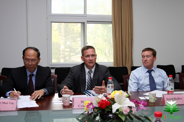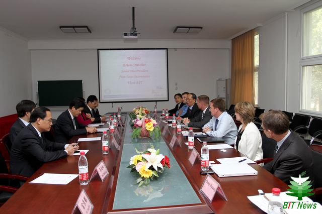 北理工参加会见的还有国际交流合作处汪滢副处长、实验室与设备管理处史天贵副处长、信息与电子学院党委书记张笈、电工电子教学实验中心主任韩力等。陪同Brian Crutcher先生来访的有TI公司副总裁Scott Roller先生、副总裁林坤山博士、全球人力开发部主任Steve Lyle先生、全球大学市场部经理Brad Ruzicka先生、 ASP市场联络部经理Julie Van Haren女士等。