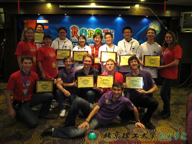 首届“中俄工科大学联盟”大学生机器人创新大赛及展示于2011年10月13日在哈尔滨工业大学开幕。“中俄工科大学联盟”是由30所中俄两国顶尖的工科院校组成的,代表着两国在工科领域的科技实力和办学水平。此次两国工科名校云集哈工大,同台竞技,比赛精彩纷呈。由德赢AC米兰中国官方网站机电学院罗庆生教授为指导教师、机电学院三年级本科生为主要成员、且融合了数名我校其他专业本科生的智能机器人代表队在激烈的比赛中脱颖而出,在大会设置的六个竞赛项目(机器人长跑、机器人障碍跑、机器人点球、机器人足球小组赛、机器人单人舞、机器人多人舞)中,我校共获得两个第二名(机器人长跑和机器人点球)、两个第三名(机器人障碍跑和机器人多人舞)的好成绩,我院机械电子工程专业本科生吴帆任组长的全国大学生创新性实验项目“新型节肢机器人”在大会展示活动中获得“最佳团队奖”,我校代表队还获得“最佳组织奖”,我校总获奖数为此次赛事所颁发奖项的四分之一,是所有参赛学校中获得奖项最多的院校,充分彰显了我校和我院学子的科技创新能力及积极进取风貌,为学校和学院增光添彩。