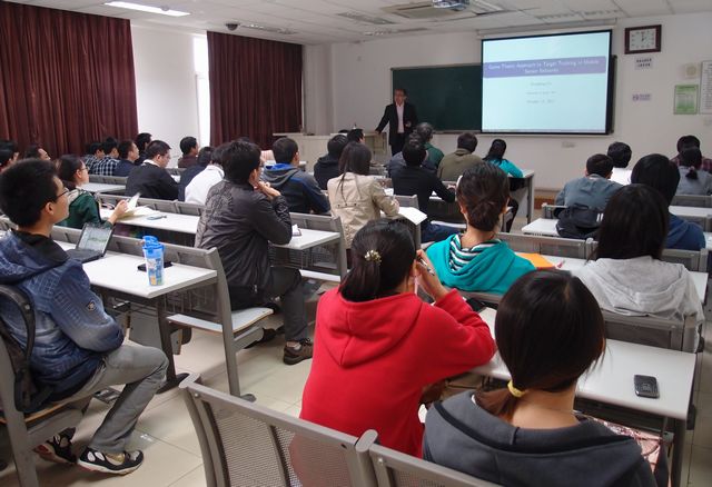 应我校“复杂系统智能控制与决策”重点实验室、自动化学院邀请,英国埃塞克斯大学计算机科学与电子工程学院,谷东兵教授10月17日下午于研究生楼103室为我校师生作了关于 “Game Theory Approach to Target Tracking in Mobile Sensor Networks”的学术报告,随后参观了复杂系统智能控制与决策重点实验室,并指导了实验室机器人感知与控制领域的研究。