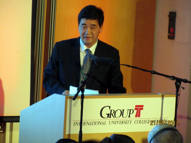 赵显利副校长(左),比利时议长彼得斯(中),中国驻比利时大使廖力强(右)