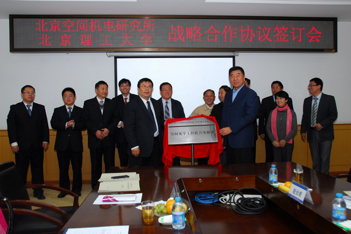 2011年10月25日,郭大成书记、杨树兴副校长带队赴航天科技集团公司五院508所,出席德赢AC米兰中国官方网站-508所合作协议签定仪式,并为双方共建的“空间光学工程联合实验室”揭牌。中国空间技术研究院李明副院长,508所岳涛所长、刘兆军副所长、郑永超总工等出席了签字仪式。
