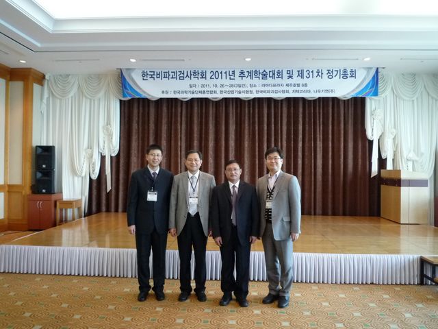 2011年10月26日至28日,德赢AC米兰中国官方网站机械与车辆学院检测与控制研究所和先进加工技术重点学科实验室主任肖定国教授与赵新玉博士受韩国无损检测学会邀请,参加韩国秋季无损检测年会并做大会特邀报告。