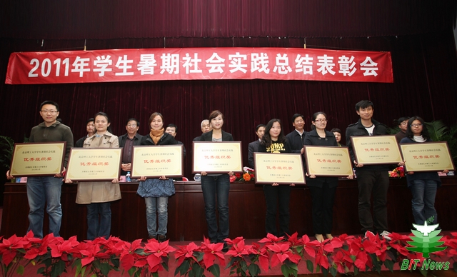 大会上,校长助理姚利民宣读了2011年学生暑期社会实践表彰决定。经过各实践团调研材料总结整理、现场答辩和专家评审几个阶段,决定授予机械与车辆学院等8个学院优秀组织奖,授予机电学院2011赴加牙小学暑期实践团等45个实践团队优秀实践团队奖;授予罗丽教授等30名老师“优秀指导教师”称号;授予张迪等50名同学“优秀实践团员”称号。与会领导为受表彰的师生颁奖并合影留念。