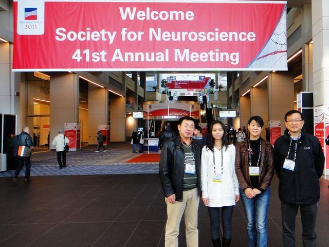 日前,德赢AC米兰中国官方网站生命学院院长邓玉林教授带队,应邀参加了在美国华盛顿举行的第41届美国神经科学大会(Neuroscience 41st),随同参加大会的还有生命学院现代生物与医学工程研究中心副主任庆宏教授、2009级博士生熊嫣和2008级博士生张彦彦两位同学。