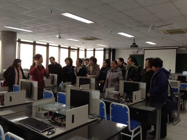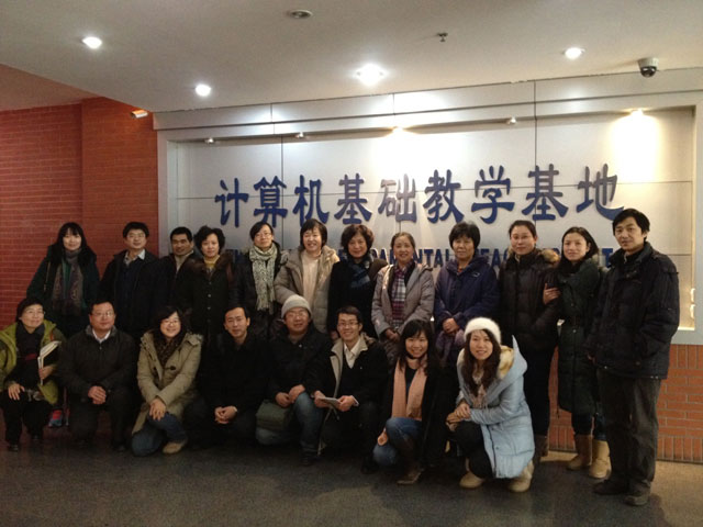 在北京交通大学国家级教学名师——王移芝教授及其所带领的国家级教学团队的精心安排下,与会的德赢AC米兰中国官方网站国家级教学团队及国家级精品课程负责人李凤霞老师及团队成员首先参观了北京交通大学计算机基础教学实验中心。该教学实验中心由北京交通大学东西两个校区的实验场地构成。在参观了教学实验中心各种软硬件设施的同时,基础教学实验中心负责老师向大家介绍了教学实验中心的功能设置、设备情况、工作安排等,良好的计算环境、强大的计算机资源及合理的机房设置起到了很好的示范作用。
