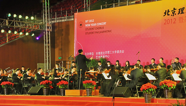 12月29日晚,由校团委、艺术教育中心主办的北理工2012新年音乐会在体育馆隆重上演。来自我校大学生艺术团交响乐团、合唱团、手风琴乐团、戏曲队的师生、校友联袂为现场两千余名观众献上了年终的艺术盛宴。