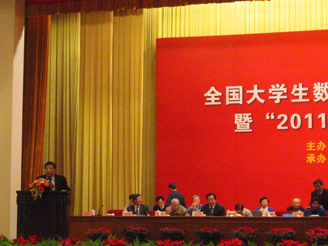 "高教社杯"全国大学生数学建模竞赛是由教育部高教司和中国工业与应用数学学会主办,面向全国高等院校的、每年一届竞赛,旨在引导大学生在实际问题分析、建立模型、求解并应用模型的一系列过程中培养大学生的数学能力和数学素养。2011年全国有全国除台湾外所有33省(市、自治区,包括港澳)以及来自新加坡和美国共1251所院校的19490队参加。甲组全国一等奖的获奖比例不到1.1%,二等奖的获奖比例仅为6.1%。