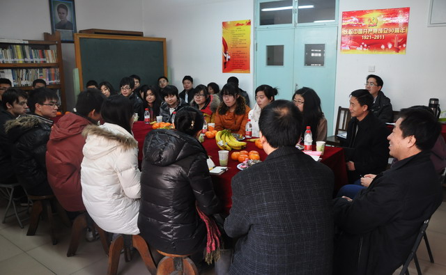 2012年1月13日上午,校党委书记郭大成与基础教育学院寒假留校学生代表在良乡校区疏桐园“红色驿站”亲切座谈。校长助理、良乡校区管委会主任姚利民及学生工作处、良乡校区管理处、基础教育学院相关领导出席并现场解答了同学们提出的问题。