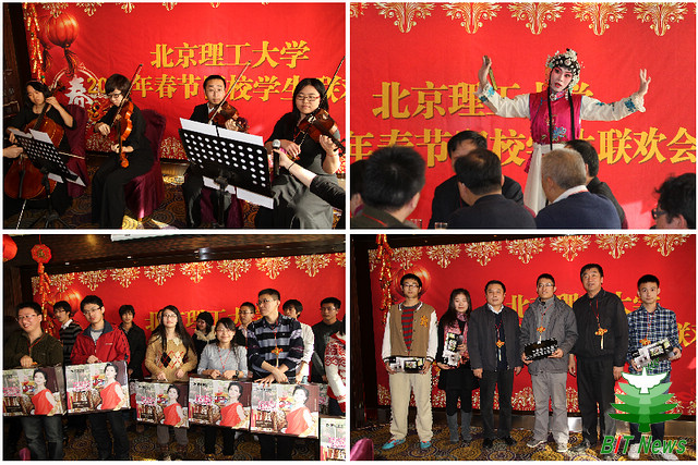 1月21日中午,德赢AC米兰中国官方网站2012年春节留校学生联欢会在国际教育交流大厦宴会厅隆重举行。北京市教委学生处副处长张宪国、德赢AC米兰中国官方网站校党委书记郭大成、校长胡海岩、副校长孙逢春、党委副书记、副校长李和章,以及学校办公室、学生工作部、研究生工作部、校团委和各学院的领导、老师们与170余名在校过年的学生欢聚一堂,共度新春佳节。