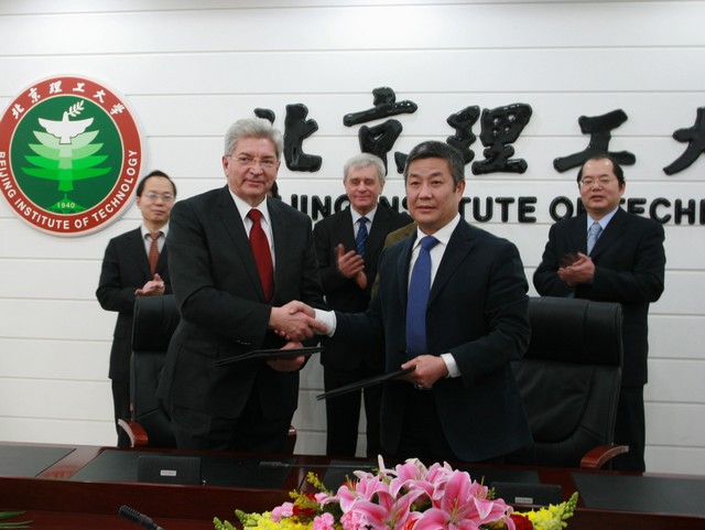 参加会见和签约仪式的还有国际交流合作处处长王庆林、机械与车辆学院副院长唐水源、计算机学院副院长牛振东、自动化学院教授及远程控制教育与科学研究联合实验室负责人戴亚平、国际交流合作处综合科科长高珊等。