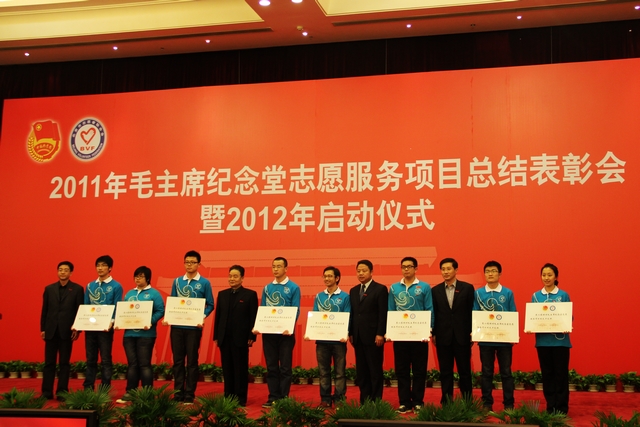 2012年3月20日下午,团市委在北京会议中心召开了2011年毛主席纪念堂志愿服务项目总结表彰会,北理工学生工作处等8家单位获得“2011年度毛主席纪念堂志愿服务团队优秀组织”荣誉称号。学生工作处处长杨海及10名志愿者代表参加了表彰大会。