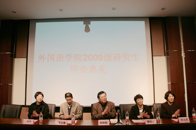 3月20日下午,外国语学院2012届研究生毕业典礼在庄严的国歌声中拉开帷幕。学院全体院领导、部分教职员工、部分学生家长和全体毕业生出席了典礼。毕业典礼由外国语学院党委副书记副院长吴文君主持。
