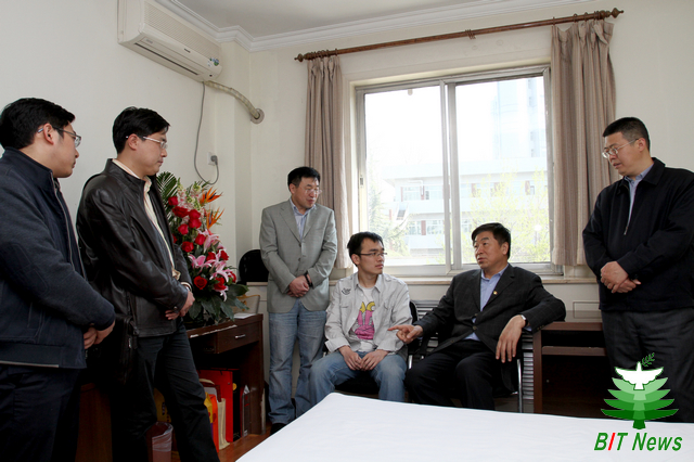 贾星同学作为北理工第二例造血干细胞捐献者,其义举得到了学校各级领导的高度重视,郭大成书记多次关心贾星同学的情况,得知其出院,特意在生命学院院长邓玉林、党委书记李汉军、校团委书记蔺伟和生命学院副书记、副院长周连景的陪同下,亲切看望了贾星同学。