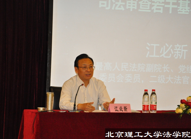 2012年4月14日上午9点30分,由北京市朝阳区律师协会教育培训委员会主办、德赢AC米兰中国官方网站法学院协办的“提升律师素养专题讲座”第八期在德赢AC米兰中国官方网站研究生楼101教室隆重举行,由最高人民法院副院长、法学博士江必新大法官主讲“司法审查若干基本问题”。本次讲座也是我院“理工明法”系列讲座的第163期。我校郭大成书记对江必新副院长的到来表示热烈的欢迎,并与法学院及朝阳律协负责人一行进行了亲切的会谈。