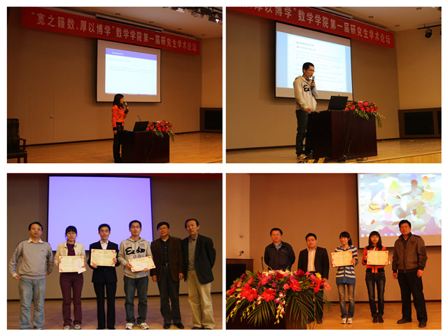 为给广大数学学院的研究生提供一个高水平的学术交流平台,拓宽研究生的学术视野,活跃学术思想,促进学术争鸣,激励学术创新;更为了响应我校进一步加强理科教育和研究的政策,在研究生工作处(部)和学院领导的支持下,数学学院研工委、研究生会组织开展数学学院第一届研究生学术论坛。
