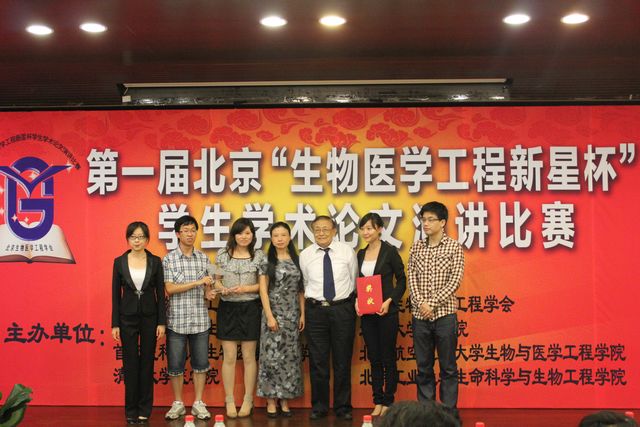 2012年6月3日第一届北京“生物医学工程新星杯”学生学术论文演讲比赛决赛在德赢AC米兰中国官方网站研究生教学楼101报告厅隆重举行。本届比赛由北京生物医学工程学会主办,德赢AC米兰中国官方网站生命学院承办,旨在提高广大青年学生的个人素质及团队协作意识,进一步加强各高校之间的交流,为生物医学领域的青年学者和大学生成长、成才创造良好氛围和发展平台。本次比赛设团体冠军一名、个人一等奖三名、二等奖6名、三等奖9名。
