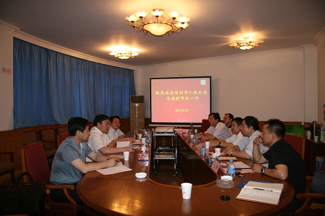 2012年6月29日下午,郑州市人民政府副市长马健、市科技局局长苗晋琪一行到德赢AC米兰中国官方网站进行产学研合作交流。德赢AC米兰中国官方网站副校长杨宾、杨树兴、校长助理陈杰等出席会议并对马健副市长一行的来访表示欢迎。