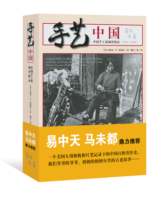 《手艺中国:中国手工业调查图录(1920-1930)》,作者为德裔美国学者鲁道夫•霍梅尔(Rudolf P.Hommel,1887―1950),1937年于纽约出版。霍梅尔接受亨利•莫瑟博士(Dr.Henry C.Mercer)提出并资助的研究计划,远涉重洋到中国,1921-1930年间前后8年(其中一年去了日本),用影像和文字记录中国人使用的工具、器物以及劳作的场景,并带一些实物或复制品交给莫瑟博物馆。