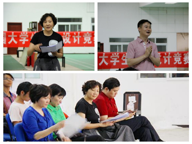 教务处副处长曹峰梅、校团委尚松田、光电学院党委书记郝群、副院长黄一帆、副书记副院长邹锐、光电学院教师白廷柱、董立泉担任专家评委,对参赛作品进行评判与指导。
