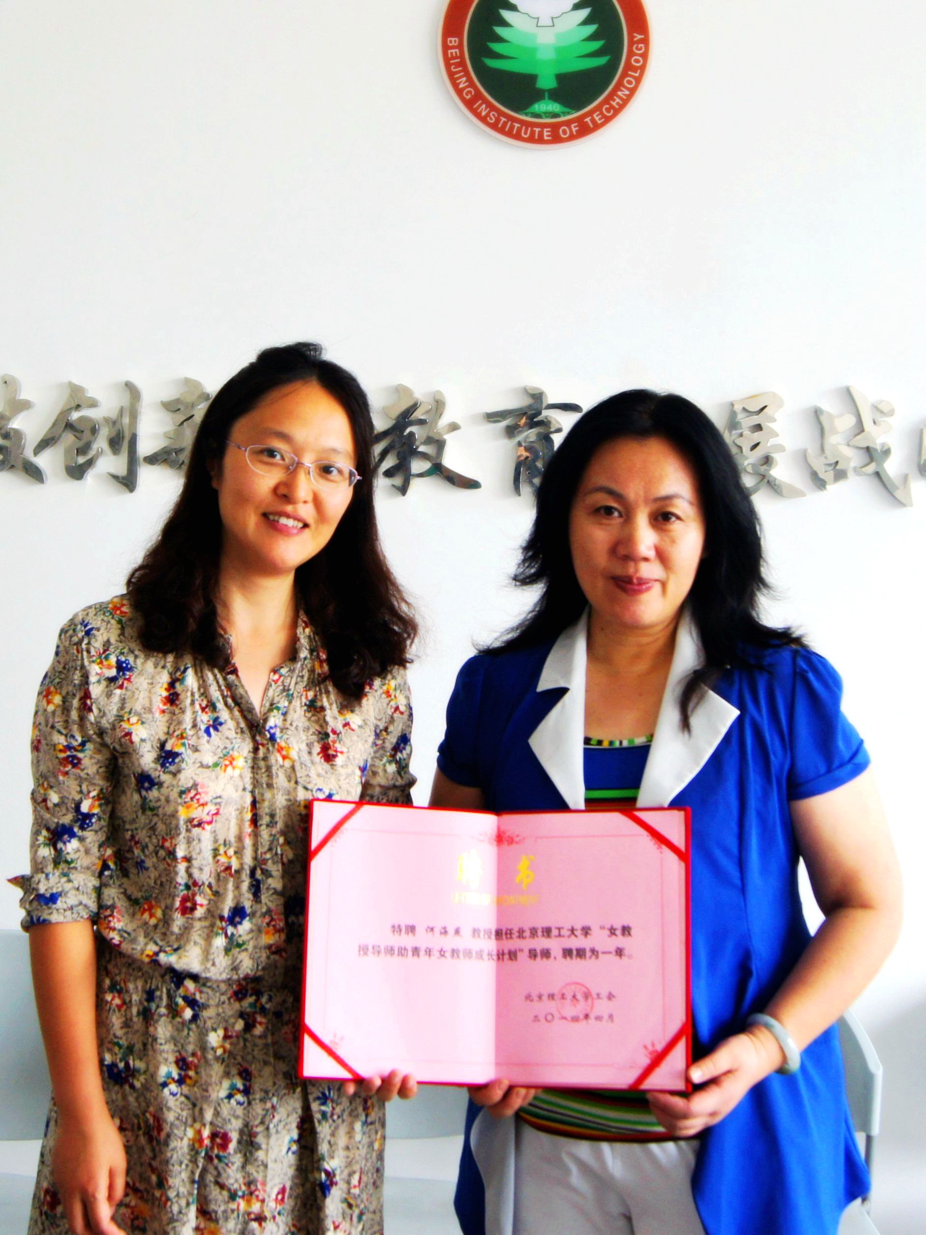 为深入贯彻落实党的十八届三中全会精神,按照《德赢AC米兰中国官方网站青年教师能力提升实施办法(试行)》(学校令[97号令]的要求,引领激励广大女教职工大力弘扬自尊、自信、自立、自强精神,立足本职岗位,创造一流业绩,发挥杰出女教授的榜样作用,培养一批青年女教师骨干力量,为实现中华民族伟大复兴的中国梦和建设世界一流理工大学的北理工梦,作出新的更大贡献,2014年3月初,校工会、女教职工委员会、女教授协会联合下发了“女教授导师助青年女教师成长计划(试行)”(以下简称本计划)。经过基层工会推荐、专家评选,最终6位女教授作为培养导师,6位青年女教师作为培养对象,入选“女教授导师助青年女教师成长计划”。