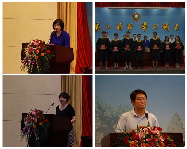 赵长明副院长宣读了优秀毕业生名单,主席台领导老师为优秀毕业生代表颁发了荣誉证书。