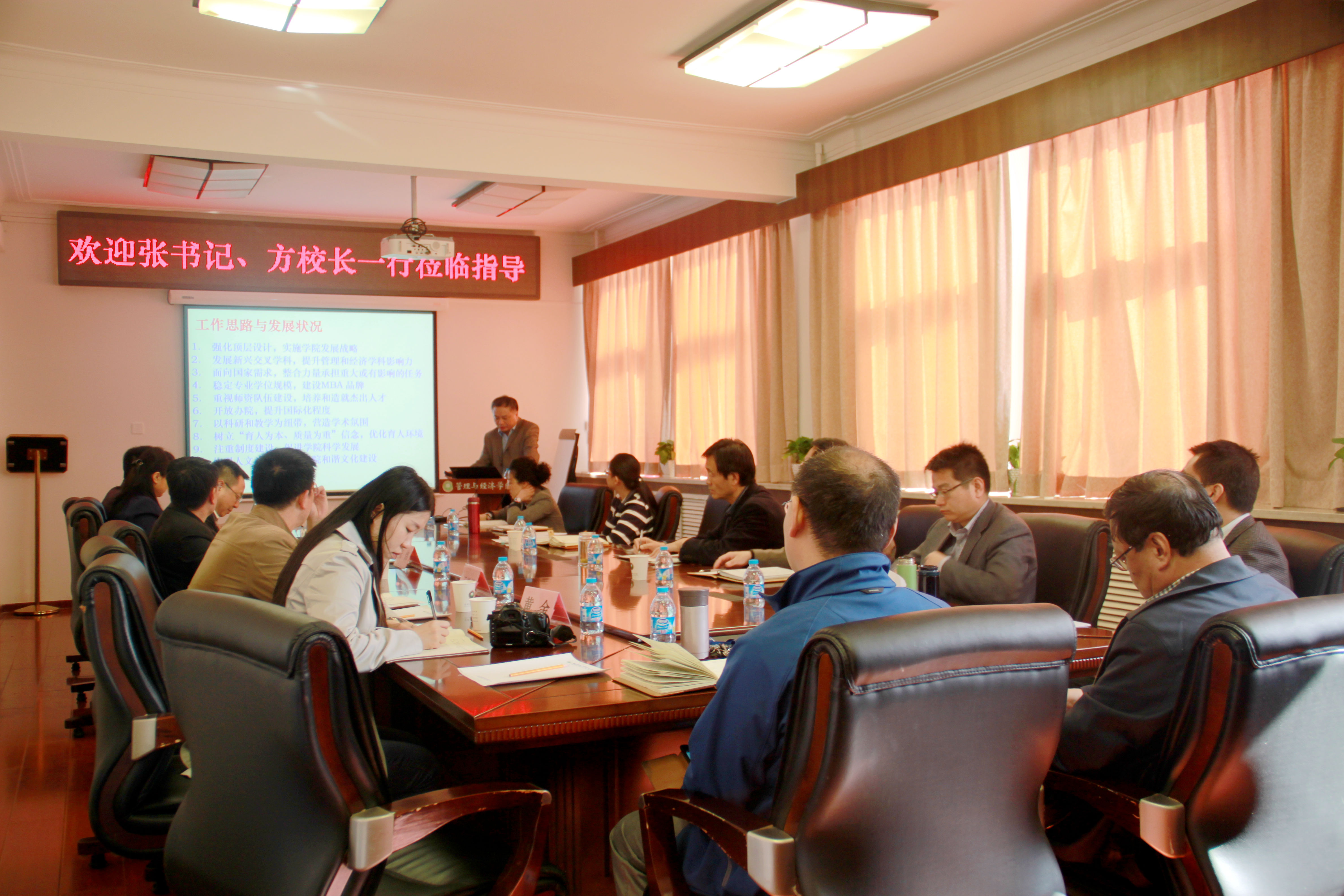 之后,副院长王兆华教授汇报了学院“十三五”规划及综合改革工作思路,以学科建设主线,提出学院“十三五”发展目标,对比分析国内标杆高校及学科情况,并就具体指标体系进行对比分析,在此基础上以问题和目标为导向,提出学院综合改革方案。