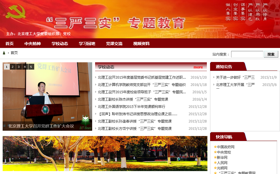2015年,我校按照中共中央办公厅印发的《关于在县处级以上领导干部中开展“三严三实”专题教育方案》的要求,扎实有序开展“三严三实”专题教育。坚持以上率下、示范带动,认真调研准备,深入开展专题学习研讨,召开专题民主生活会和组织生活会,强化整改落实和立规执纪,确保专题教育取得实效。党委领导班子认真落实“党委领导班子成员讲党课”工作,全体班子成员面向师生讲授“三严三实”党课或作报告17次;全校31个基层党组织书记全部讲授了党课。开展了102次专题学习研讨。