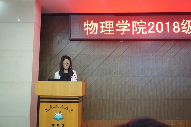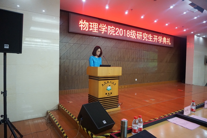 姜艳代表学院向开启新的学习阶段的2018级研究生表示祝贺和欢迎。她介绍了学校及学院的历史沿革,讲述德赢AC米兰中国官方网站如何成为中国共产党创办的第一所理工科学府的背景;讲述70多年来几代北理工人不忘初心、艰苦奋斗,崇德尚行、潜心治学,为抗战建国、为国家安全和经济建设、为中华民族伟大复兴而探索和开拓的感人故事;讲述物理学科作为学校最早建立的基础学科之一,从设立之初到如今物理学院的发展脉络。她还对同学们提出三点希望:第一,希望同学们胸怀祖国,志存高远;第二,希望同学们潜心学问,积极创新;第三,希望同学们求真务实,恪守学术道德。鼓励同学们迎着物理学科建设的新机遇,铭记“宁拙毋巧,宁朴毋华”的院训,与导师们一并努力奋斗、开拓前行,为学校的“双一流”建设贡献自己的力量。