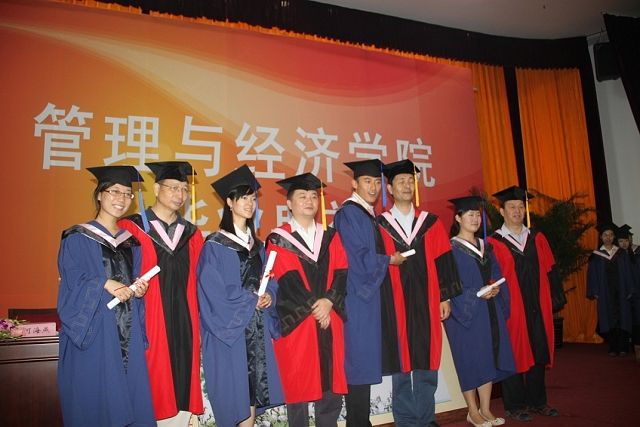 随后,管理学院魏一鸣教授、李金林教授、韩伯棠教授、吴祈宗教授等为全体毕业生援正流苏,授予学位,并祝贺他们光荣毕业。