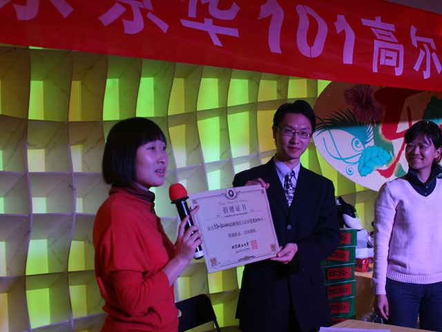 京华101高尔夫球队代表与我院代表签署捐赠协议,学院向京华101高尔夫球队颁发了捐赠证书。随后,京华101高尔夫球队成员为获得捐助的学生代表进行了颁奖。