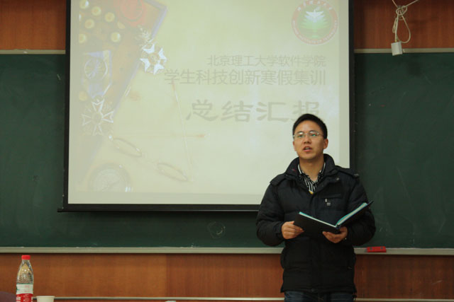 首先,会议由参加集训的各项目组一一上台向各领导和指导老师汇报开始,各项目组介绍了自己寒假以来所做的工作,从项目背景、实用价值、项目完成情况、后期工作计划、阶段性成果展示、集训收获和感想等方面汇报了详细情况。