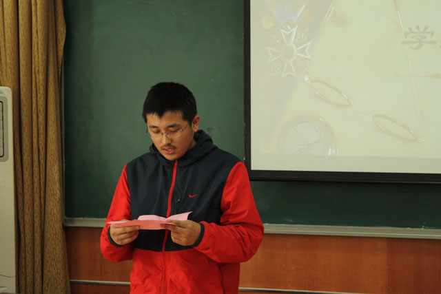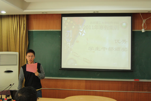 丁院长讲话后,学院领导和老师为本次集训表现特别优异的同学和组织得力的学生干部颁发了奖状和奖品,董大海老师宣读了颁奖词。2010级学生周杨森代表所有参训学员表达了对学院领导和老师的感激之情。