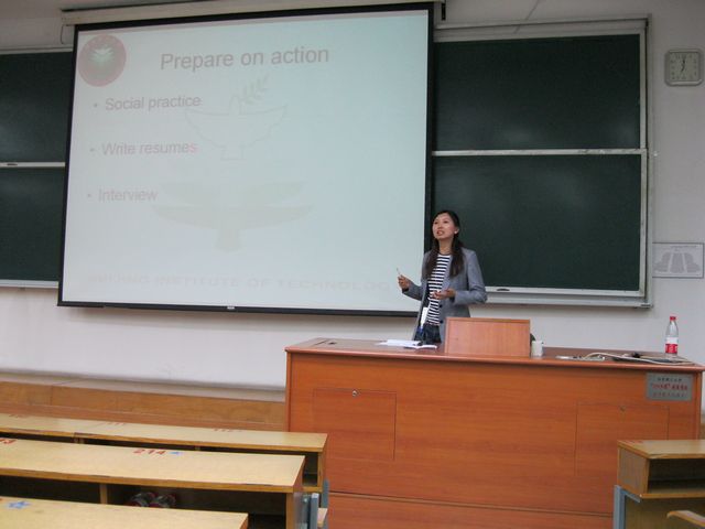 2011年4月27日晚,学院08级本科生职业发展规划系列讲座继续进行,此次讲座的主题是就业准备(Preparation for seeking the job),由学院就业指导中心党宇琦老师主讲。机械与车辆学院08级辅导员唐天和全体本科生聆听了此次讲座。