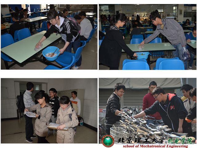 为响应学校党委学习雷锋精神文件要求,落实校团委“信仰·青春·阳光”主题系列活动号召,深入开展学习雷锋精神的互助、奉献涵义,机电青协号召志愿者于4月6、7、8日三天分别开展了“学习雷锋精神,志愿者在行动”为主题的系列活动。