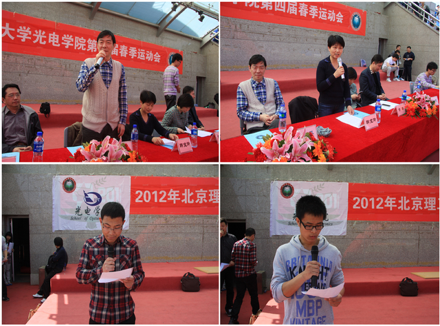 魏平院长首先致辞,他希望学院的学生和老师们能够把运动会的竞技精神带到日常的学习和科研工作中去,为光电学院创造更多更骄人的成绩。随后,韩宝玲书记致开幕词,她希望全院师生积极锻炼,以健康的体魄和昂扬的精神风貌,共创光电学院的辉煌。