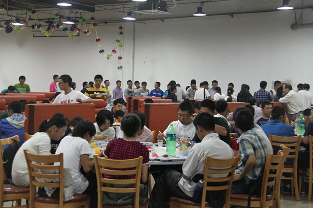 随后在所有同学老师的热情欢迎下,陈鹏万书记发表了简短而幽默风趣的讲话。在陈书记“吃好,喝好,玩好”的讲话的带动下,同学们也不见了和老师们一起就餐的拘束,纷纷离座取餐。