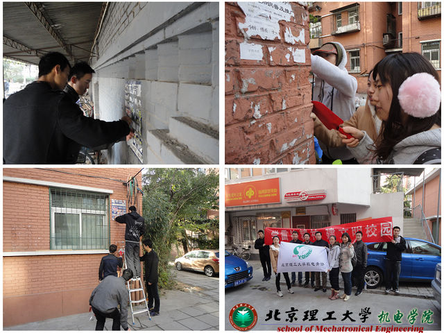 2012年11月3日至11月17日,响应学校党委学习雷锋文件精神,校团委“信仰·青春·阳光”活动的号召,机电青协携手本科生团支部开展了“学雷锋精神,建和谐校园,创和谐社会”主题系列服务活动,机电学院青年志愿者协会积极筹划,及时联系,组织了一系列形式多样的志愿服务活动,彰显了当代大学生的青春活力和服务奉献精神。本次主题系列团日活动,形式不一,各具特色,同学们用自己的爱心开展每次活动,或到图书馆志愿服务,或为老人金婚庆典献力,或帮助社区清理小广告,用自己的行动践行着雷锋精神。