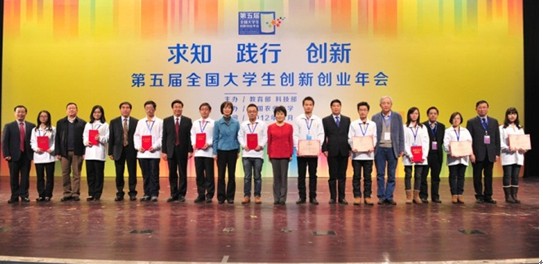 11月24日至25日,由教育部、科技部联合主办的第五届全国大学生创新创业年会在中国农业大学举行。共有来自全国160余所高校的800多位师生参加了年会,196项大学生创新创业项目进行了集中展出,90篇优秀大学生论文在会上交流。教育部党组成员、部长助理林蕙青出席闭幕式并致辞。
