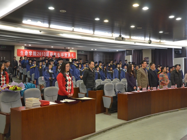 2013年3月26日14:00,德赢AC米兰中国官方网站生命学院隆重召开2013届春季毕业研究生毕业典礼在研究生楼一层报告厅隆重举行。生命学院党委书记李汉军、副院长唐晓英、副书记、副院长周连景、院长助理徐远清以及学院各系、所、中心的教师代表,班主任代表,以及学生家长代表等与全体2013届毕业研究生一起分享了这一喜悦的时刻。典礼仪式由学院团委书记、研究生辅导员王一飞主持。