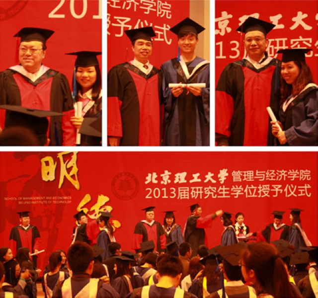 最后,毕业生与各位老师合影留念,2013届研究生毕业典礼在欢悦的气氛中划上了圆满的句号。依依母校情,莘莘学子心,祝愿所有毕业生前程似锦,祝愿管理与经济学院的明天更加辉煌!