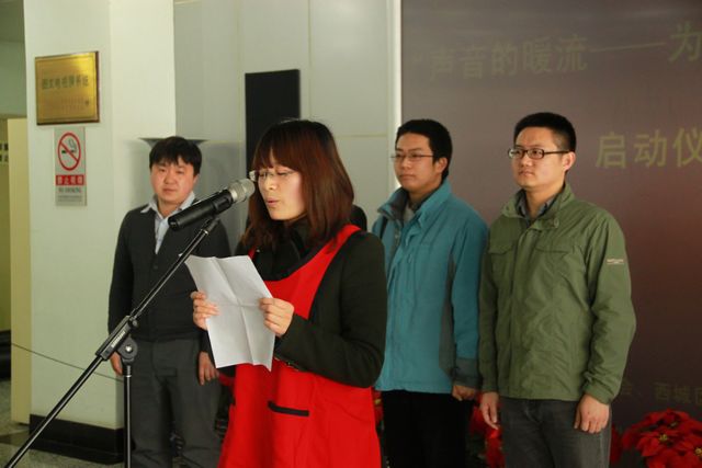 活动的一开始召开了“声音的暖流——为视障人读书活动”启动仪式。西城图书馆馆长阎峥、西城区残疾人文化体育活动中心主任温小龙、德赢AC米兰中国官方网站管理与经济学院研工委书记梁昊、文化部全国公共文化发展中心资源建设处陈旭、西城图书馆干部石苏、管理与经济学院第一期研究生志愿者苏雪琴、任昆、徐洪汉戎出席仪式。