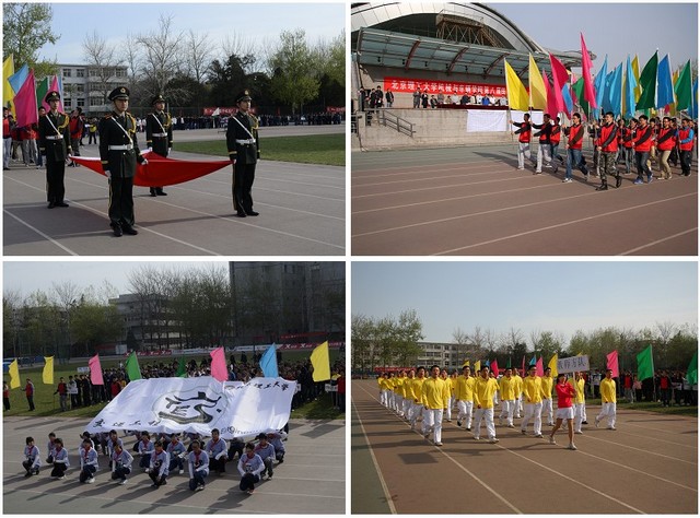 入场式上,四名护旗手庄严的护卫着国旗徐徐入场。紧随其后的是我院装甲车辆工程专业28名国防生组成的彩旗方阵以及16个研究生、本科生专业组成的学生方阵,他们整齐一致的步伐、奋发向上的口号、丰富多彩的队形变换展现出我院学生多样的风采。我院教师代表队也以整齐的步伐、亲和热情的面貌压轴出场,赢得了学生们的阵阵喝彩。