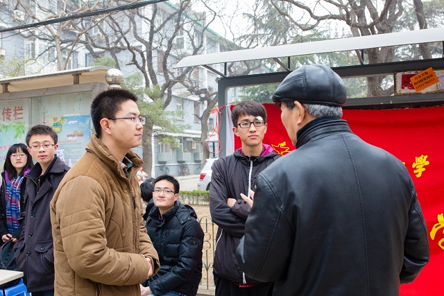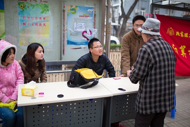 虽然早已立春,但北京多变的天气还是让同学们吃了不少苦。前一天还阳光万里,到了义诊的这一天,天气阴沉,冷风阵阵。但是在活动的过程中,在外场的同学们虽然冻得瑟瑟发抖,仍然坚持为居民耐心解答每一个问题。每班同学分成了3组,分别负责了不同的时段,但仍有很多同学从上午一直待到了义诊结束,利用自己所掌握的知识为居民们排忧解惑。