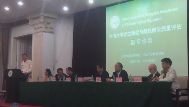 2012年4月2日,“中国大学学生调查与院校教学质量评估”国际论坛(Forum on Students Survey and Assessment of Chinese Higher Education)在中山大学怀士堂举办,本次论坛由中山大学教育学院与北京大学教育学院共同主办。教育部评估中心副主任王战军、国家教育咨询委员会委员李延保、美国高教学会原会长P. T. Terenzini、广东省教育厅副厅长胡振敏、厦门大学副校长邬大光、中国高教学会副秘书长叶之红、北京教育学院院长文东茅、中山大学常务副书记副校长陈春声出席了论坛开幕式。