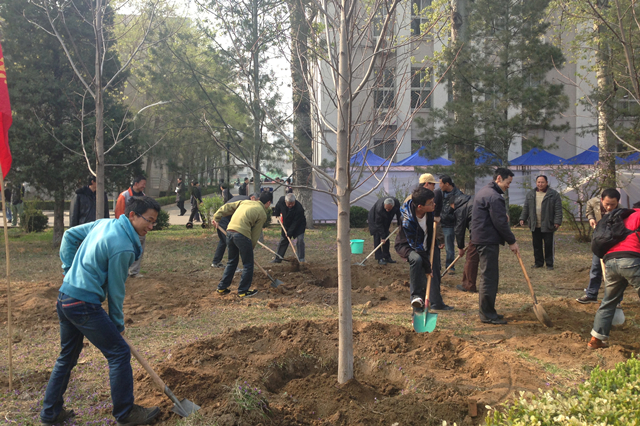 植树场面热闹非凡,又不乏其乐融融之景。经历了将近一个半小时的辛苦劳动,大家共同见证了植树的成果与感动。本次植树活动,七十余名师生代表共种植马褂木、文冠果、金银木的等乔灌木百余株。种植一棵树,奉献一份关爱,增加一份希望!不仅美化了校园环境,同时也锻炼了的团结协作能力,更用这种方式号召全院的同学投入到爱绿护绿、建设绿色校园、弘扬绿色文明行列中来。